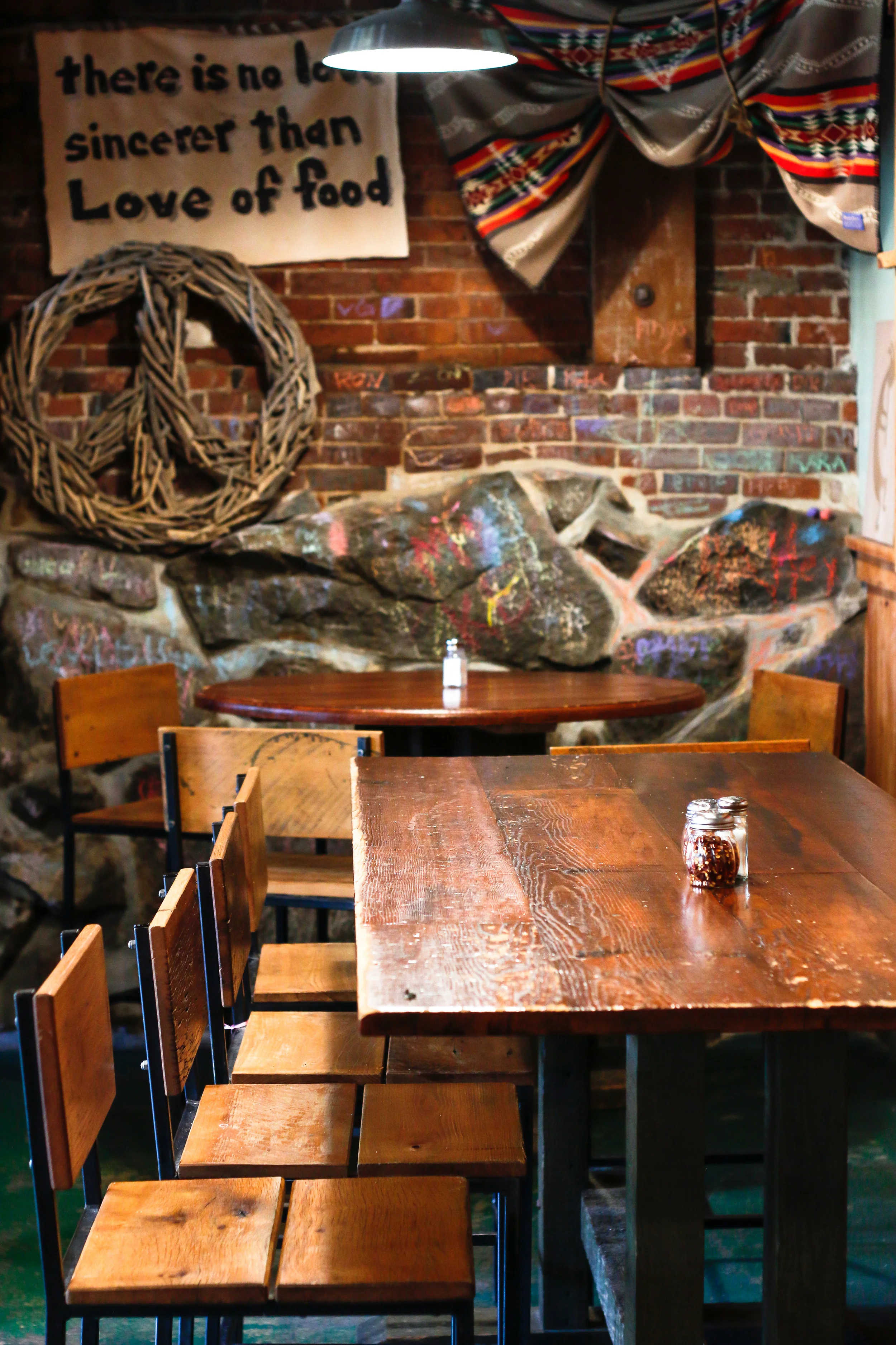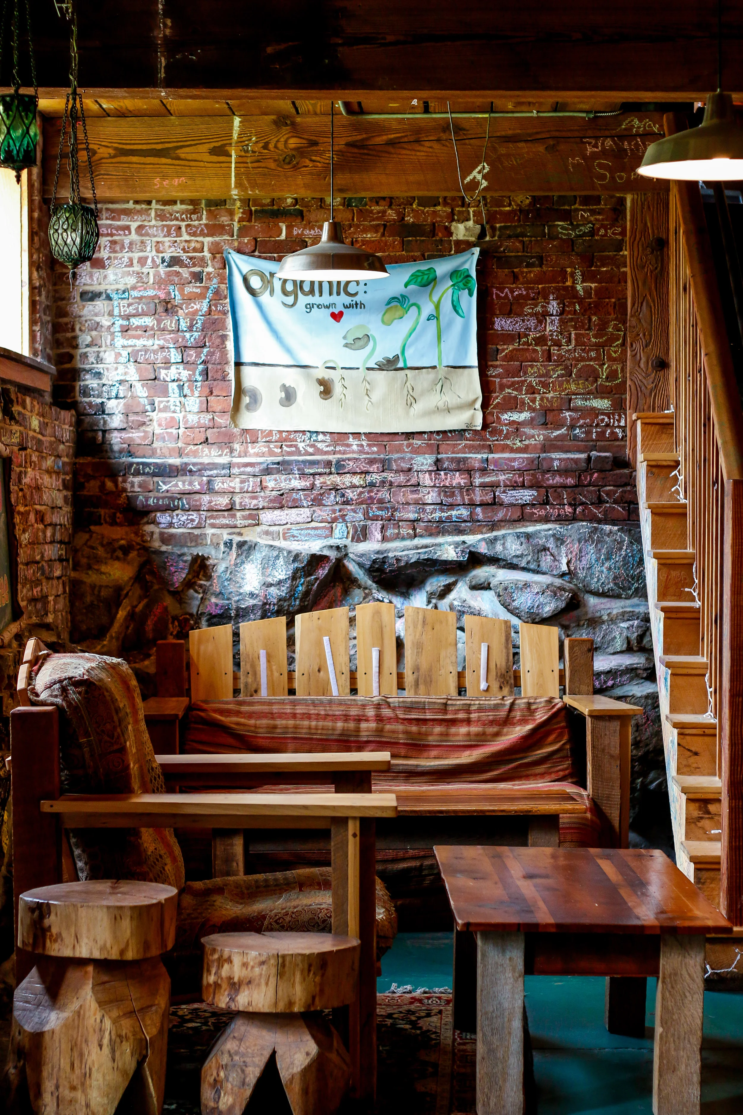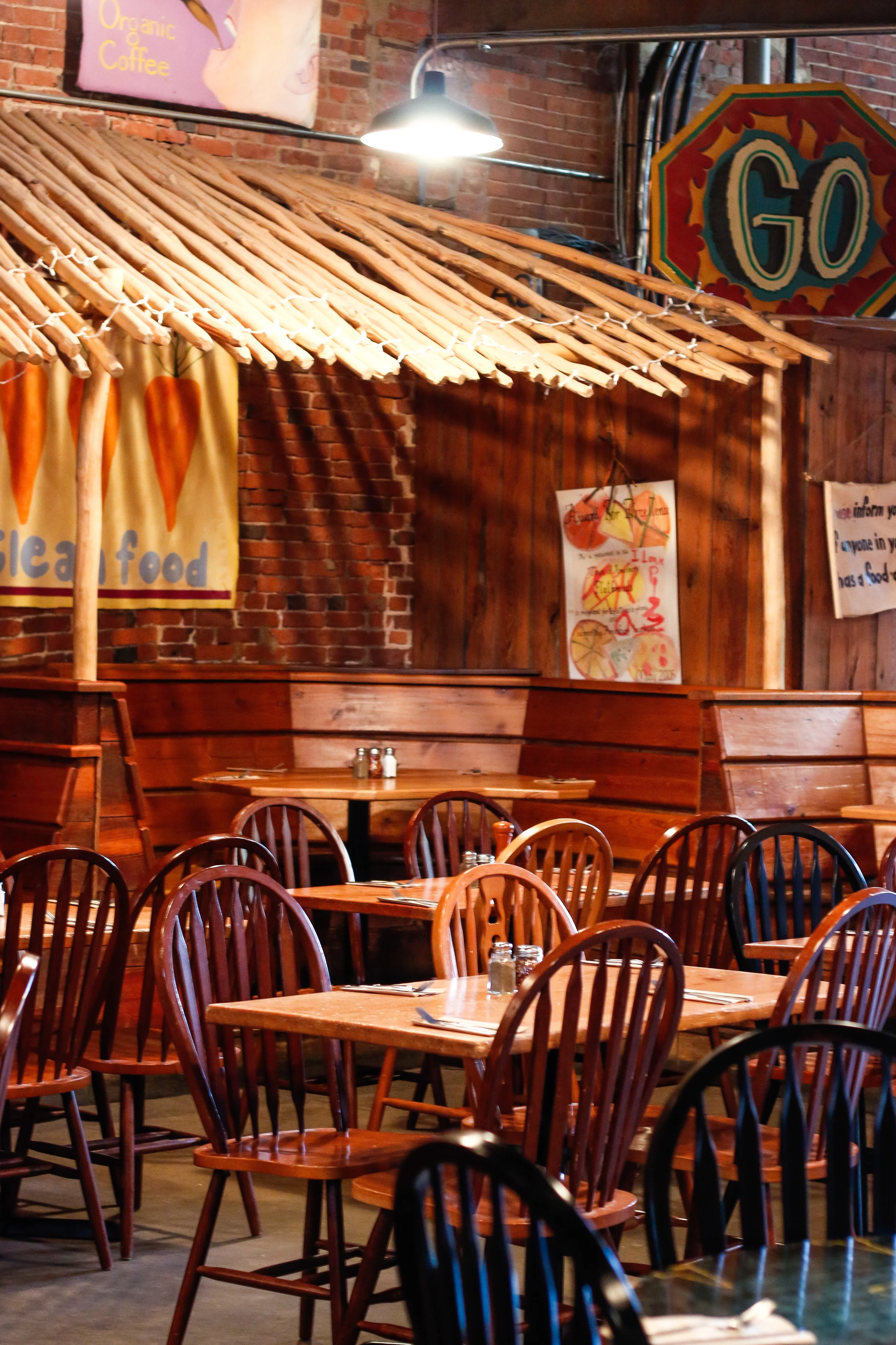 How much of the food is locally sourced? Depending on the time of year, spring summer and fall are the most locally sourced times of year. There are some items we can get locally sourced all year long like our blue cheese and our maple syrup.